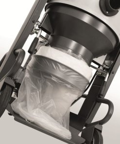 Emiş ünitesi, arka kasaya yerleştirilmiş, yıldız-üçgen yol verici ile donatılmış bir elektrik paneli tarafından kontrol edilmektedir. Makina, 9 metrelik, 4 çekirdekli elektrik kablosu ile donatılmıştır. Arka kasanın üst tarafında, kontrol panelinin üzerinde açma-kapama düğmeleri bulunmaktadır. Kontrol panelinde ayrıca, bir zamanlayıcı ve filtre durumunun kontrolünü sağlayan bir manometre bulunmaktadır. Harici bir manuel filtre çırpıcısı, kolay, hijyenik ve etkili filtre temizliği sağlar. Özel polyester yıldız filtre, çok etkili bir filtreleme sağlar. Mutlak filtreleme gerektiren durumlarda HEPA filtre kullanılabilir. 175 litrelik çelik atık haznesi taşıma tekerlekleri ile uyumludur ve oldukça pratik boşaltma sistemi ile kolayca tahliye edilebilir. Makinanın gövdesi, epoksi boyalı, dayanıklı ve uzun ömürlü silindirik çelikten imal edilmiştir. Makinanın dengesi, arka kasanın altına yerleştirilmiş emiş ünitesinin pozisyonu ile sağlanır. Manevra kabiliyeti ve kullanım kolaylığı, hepsi 200 mm çaplı ve rulmanlarla birleştirilmiş 2 sabit ve 2 döner tekerlek ile sağlanır